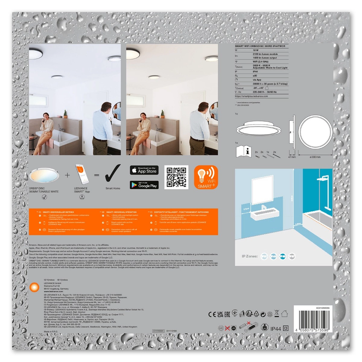 Plafon LED Lampa łazienkowa ORBIS Disc 18W 2100lm ciepła-zimna 30cm SMART+ WiFi LEDVANCE