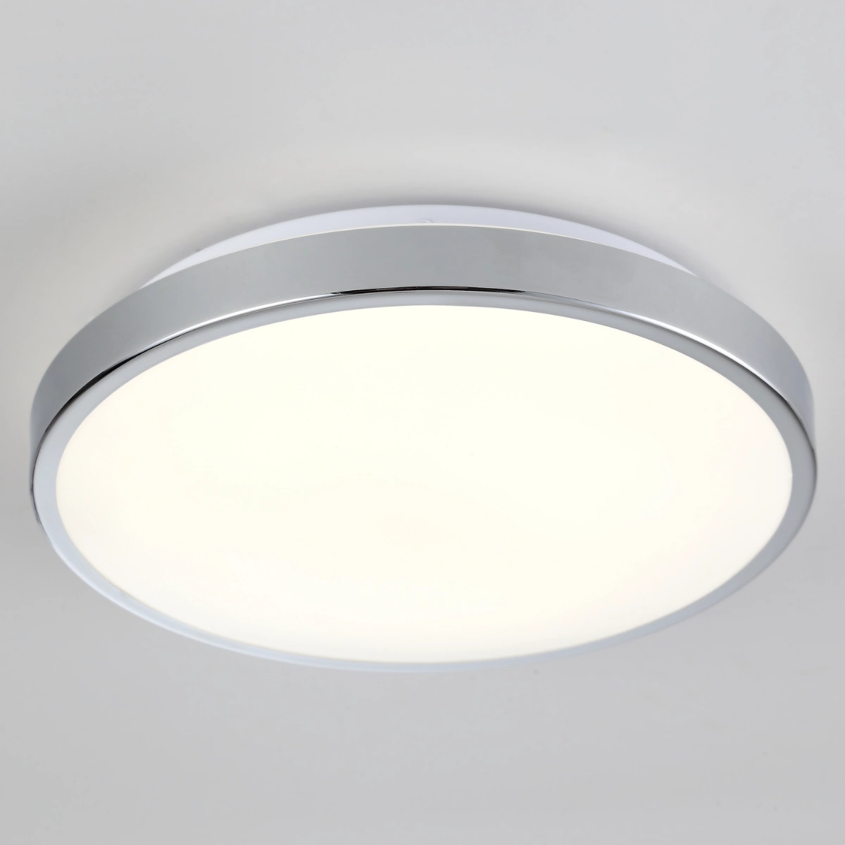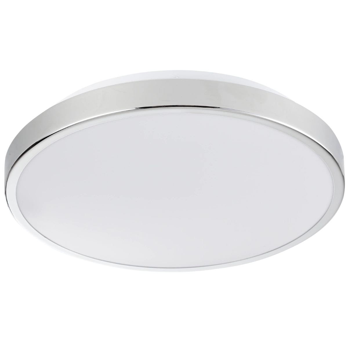 Nowoczesny PLAFON LED o średnicy 30 cm serii KERN marki POLUX w kolorze białym-chromie o wysokowydajnym, energooszczędnym źródle światła LED o mocy 15W i strumieniu świetlnym 900lm. Lampa wyposażona została w diody LED, która rzuca łagodne refleksy i zapewnia równomiernie rozpraszające się światło, dzięki czemu niweluje negatywny efekt olśnienia.