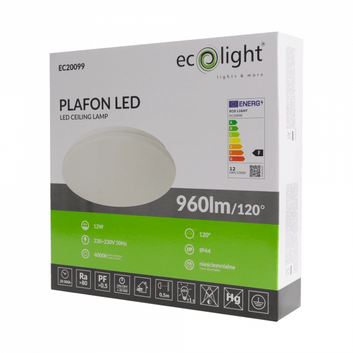 - Skuteczność energetyczna: Plafon LED o mocy 12W zużywa minimalną ilość energii, co pozwala na oszczędność kosztów związanych z oświetleniem.
