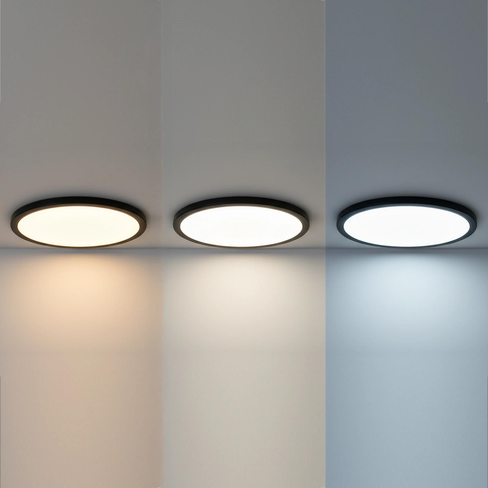 Plafon wyposażono w funkcję CCT, która pozwala zmieniać barwę światła między 3000K, 4000K i 6500K. Ciepłe 3000K tworzy przytulną atmosferę idealną do relaksu, neutralne 4000K zapewnia naturalne, codzienne oświetlenie, a chłodne 6500K daje maksymalną jasność i doskonale sprawdza się w miejscach wymagających precyzji i wyraźnego światła.