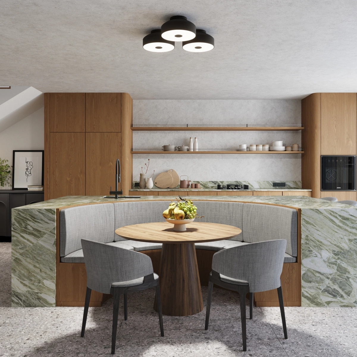 - Oświetlenie w jadalni – lampa OMIQ Crimson z czterema punktami świetlnymi doskonale oświetli stół, podkreślając atmosferę podczas posiłków.