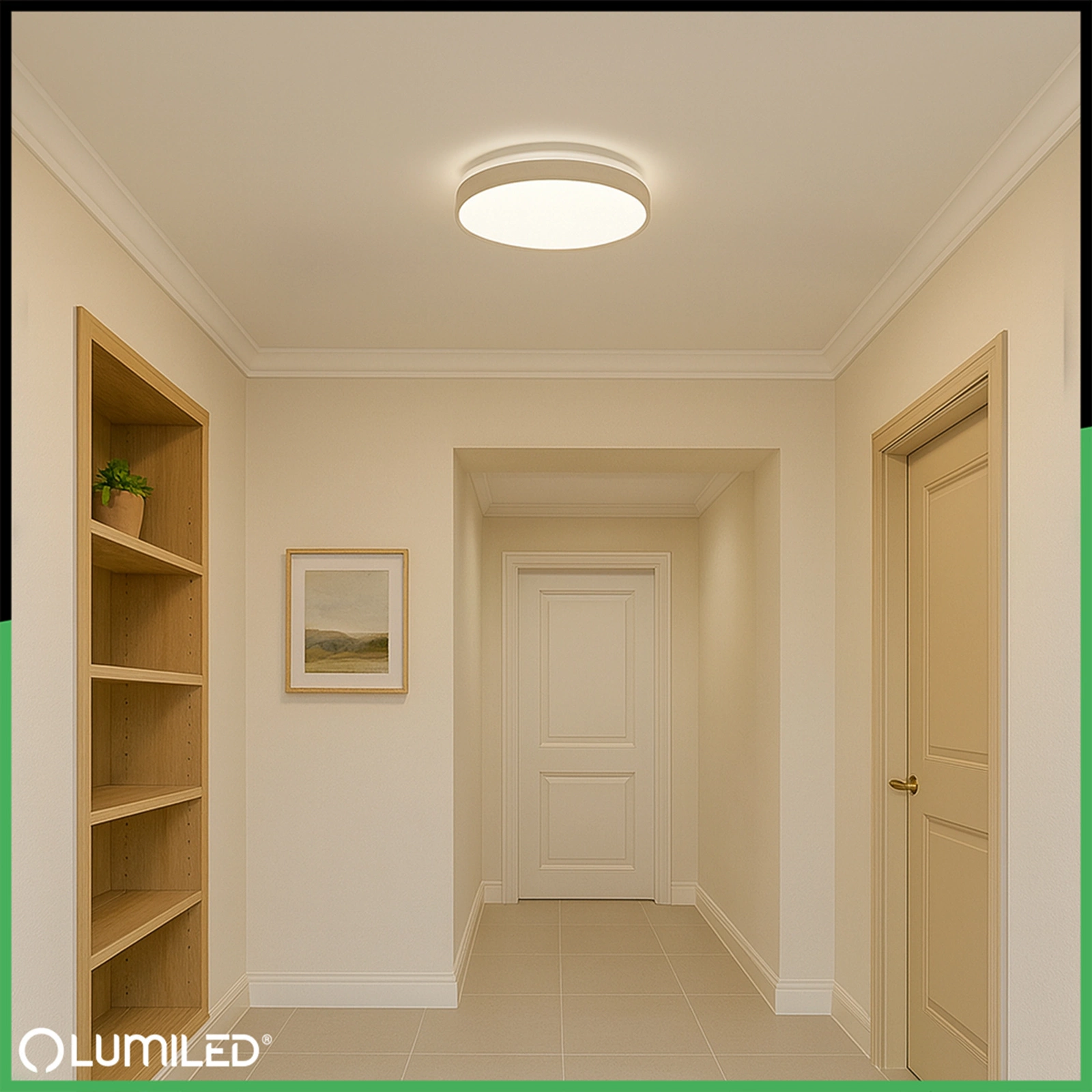 Światło 4000K wiernie oddaje barwy otoczenia, dzięki czemu wnętrze wygląda świeżo i naturalnie, a codzienne czynności stają się przyjemniejsze. Moc 24W i jasność 2500 lm zapewniają wyraźne, równomierne oświetlenie, które ułatwia pracę, naukę i odpoczynek bez uczucia zmęczonych oczu. To rozwiązanie, które zapewnia oszczędność, bezpieczeństwo i trwałość w jednym – zyskujesz pewność, że Twój dom zawsze będzie dobrze oświetlony.