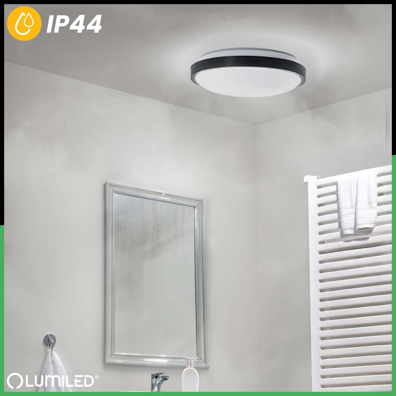 - Łazienka: Stopień ochrony umożliwia montaż w łazienkach poza bezpośrednim zasięgiem wody.