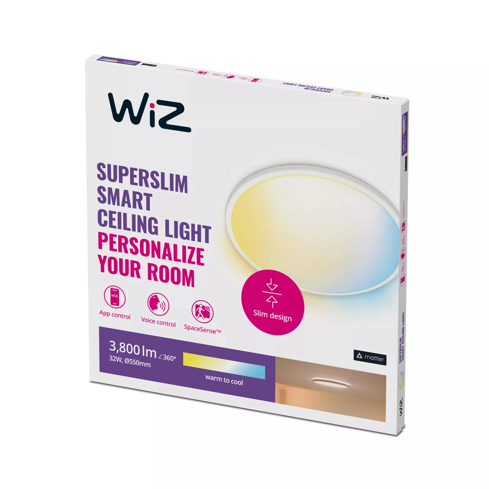 Plafon LED Lampa Sufitowa Natynkowa 32W 3800lm 2700-6500K TW 55cm Biała Okrągła Inteligentna SMART WiFi Bluetooth Aplikacja Superslim WiZ
