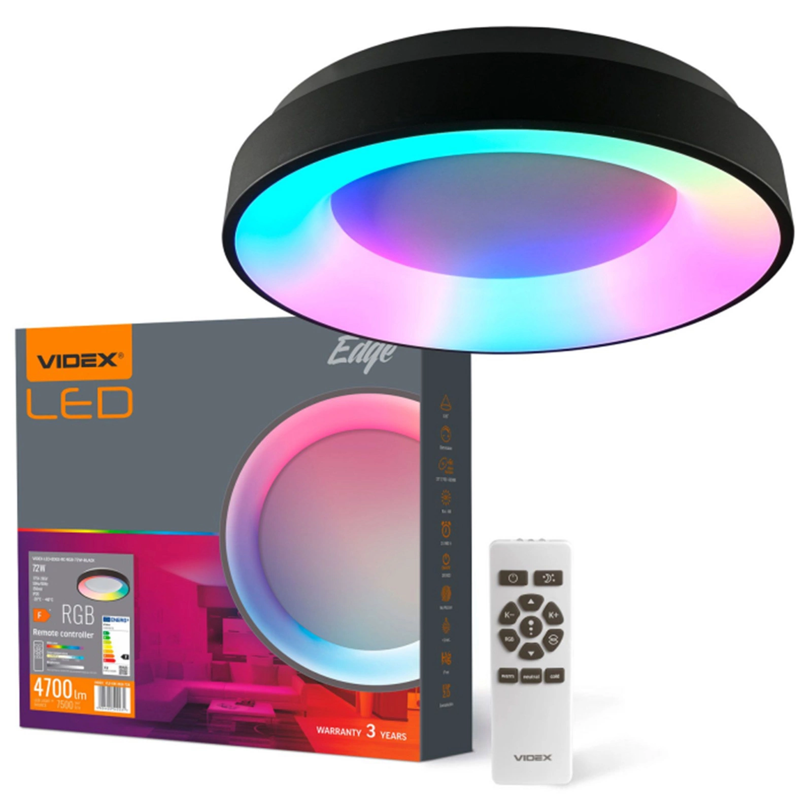 Plafon LED Lampa Sufitowa Natynkowa 72W 7500lm 2700-6000K CCT + RGB Czarna Ściemnialna + Pilot EDGE Videx