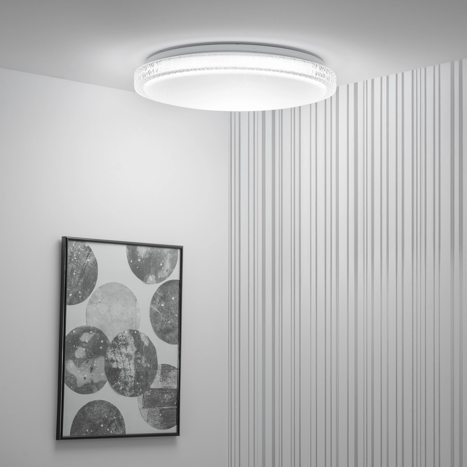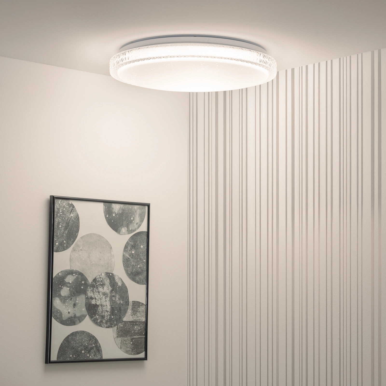 Plafon LED o średnicy 40 cm to oryginalne i nowoczesne oświetlenie, które zostało stworzone z myślą o efektywności energetycznej i estetyce. Okrągła lampa posiada mleczny klosz, dzięki któremu światło jest rozprowadzane równomiernie w pomieszczeniu. Mleczna przesłona wpływa na wygląd i dystrybucję światła. Ponadto może pomagać w tworzeniu przytulnej atmosfery w sypialni, salonie lub innych przestrzeniach.