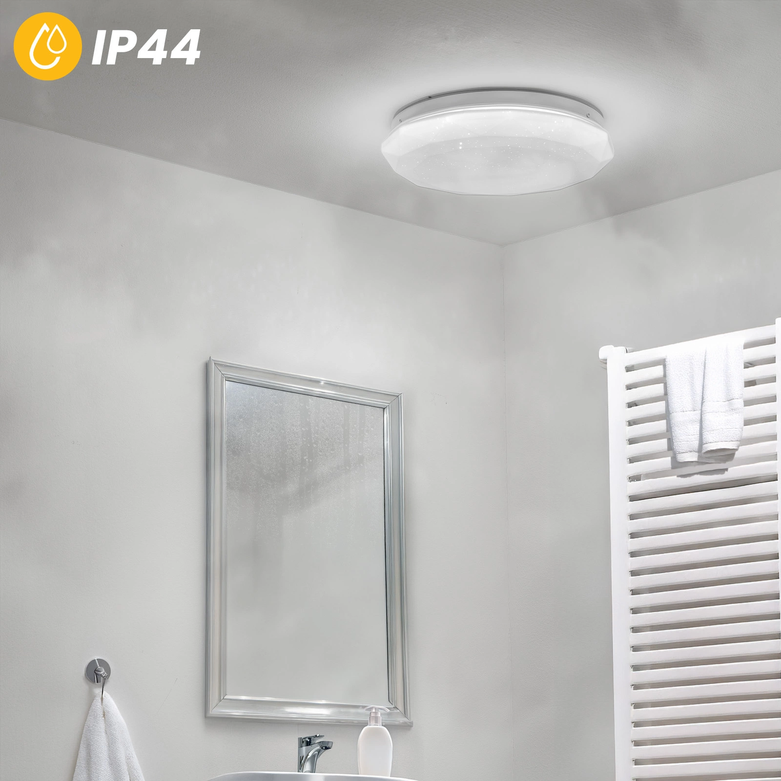 Plafon o stopniu ochrony IP44 to doskonały wybór do zastosowań zarówno wewnętrznych oraz zewnętrznych. Jego wysoka odporność na wodę i kurz sprawia, że jest niezawodny nawet w trudniejszych warunkach atmosferycznych. Produkt wyposażony jest w podwójne uszczelki, umieszczone zarówno wewnątrz, jak i zewnątrz obudowy, co zapewnia wyjątkową szczelność. Solidna konstrukcja oraz wysoka jakość użytych materiałów, daje pewność jego trwałości i niezawodności przez długi czas użytkowania.