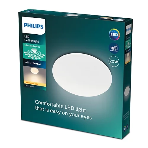Odkryj nowy wymiar oświetlenia z Lampą Sufitową Moire CL200 od Philips. Ta innowacyjna lampa oferuje nie tylko imponujące osiągi, ale także estetyczny design, który idealnie wkomponuje się w każde wnętrze. Dzięki zastosowanej technologii EyeComfort, lampa dostarcza światło, które jest komfortowe dla oczu i nie powoduje zmęczenia. 1800 lumenów jasności oraz ciepła barwa 2700 K sprawiają, że pomieszczenia zostają równomiernie oświetlone, co tworzy przytulną atmosferę w Twoim domu.