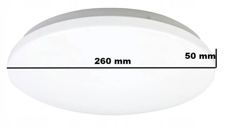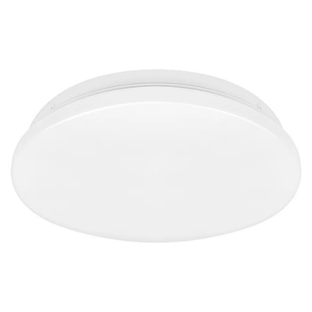 Plafon wyposażony jest w zintegrowane diody SMD, które wyróżniają się efektywnością świetlną i trwałością. Jego moc wynosi 12W i świeci neutralnym światłem o temperaturze 4000K oraz jasności 840lm, co daje wydajność 70lm/W. Posiada klasę szczelności IP44, co oznacza odporność na zachlapanie wodą, dzięki czemu nadaje się do montażu nad prysznicem lub wanną.