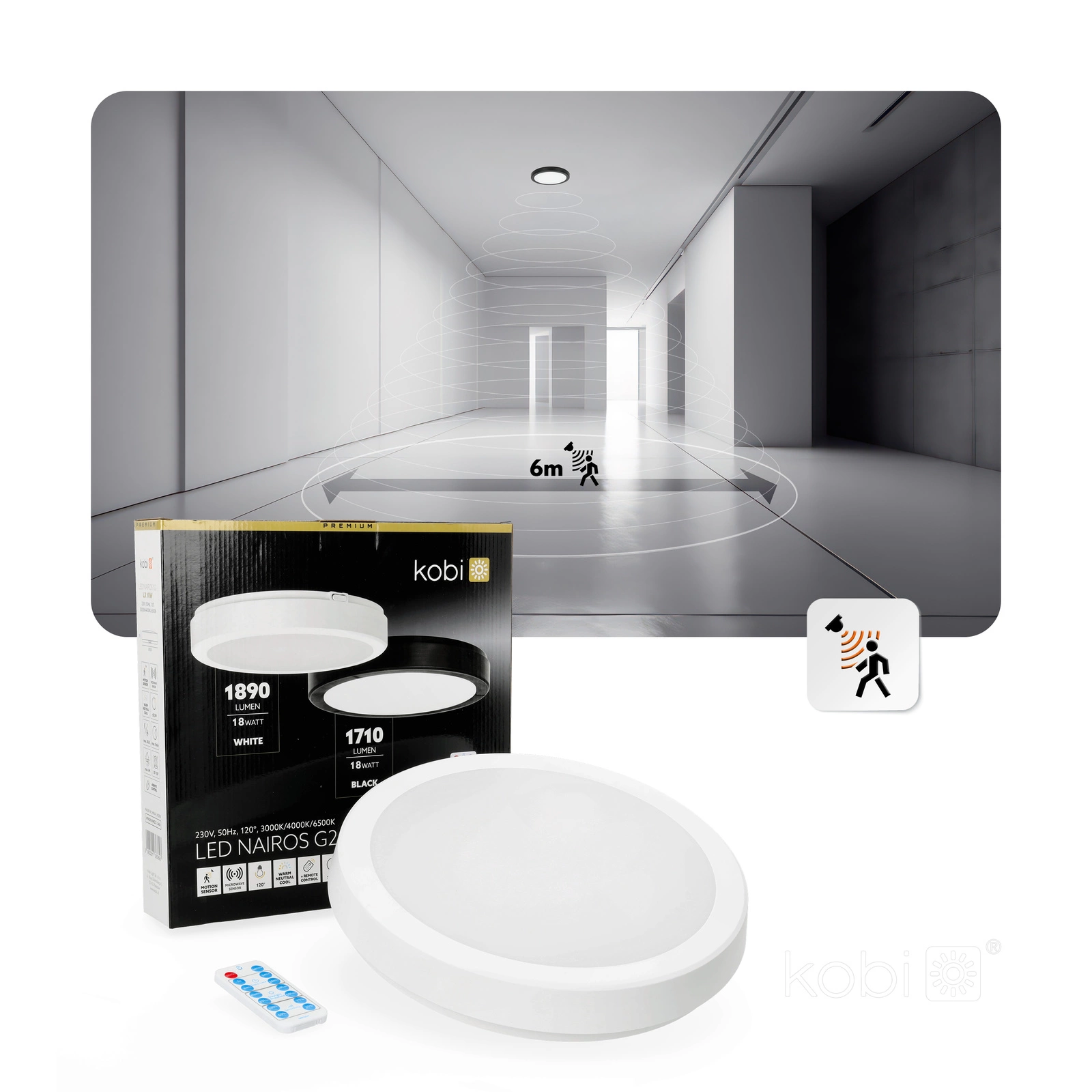 Plafon Nairos został wyposażony w czujniki ruchu i zmierzchu, co znacznie zwiększa jego funkcjonalność. Z ochroną IP65, jest w pełni przystosowany do pracy w różnych warunkach atmosferycznych, sprawdza się doskonale w łazienkach, na balkonach czy ogrodach. Jego prosty, biały design doskonale wkomponuje się w każde otoczenie. Wybierz zaufaną jakość od Kobi Light i ciesz się niezawodnym oświetleniem każdego dnia!