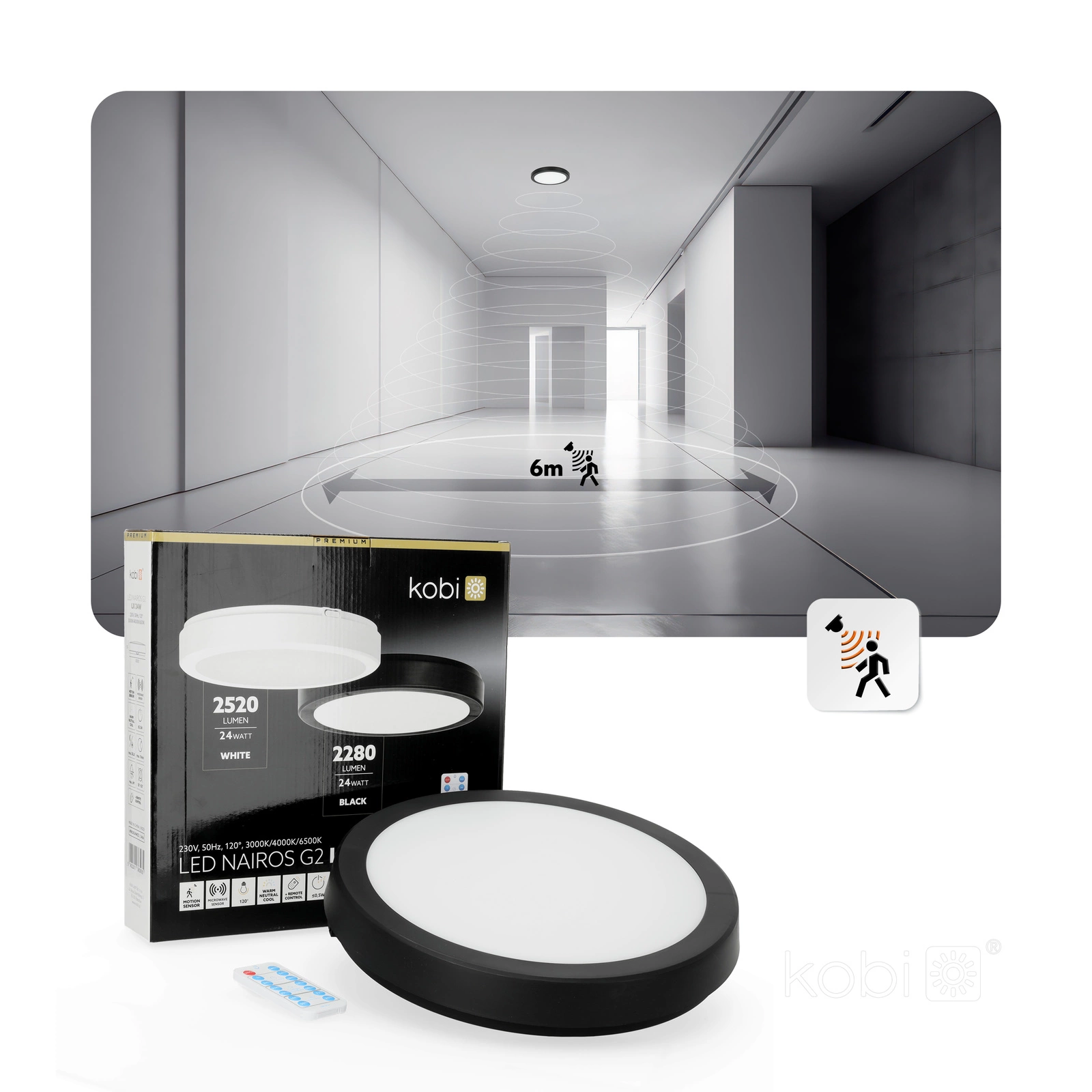 Plafon LED Łazienkowy Sufitowy Natynkowy 24W 2280lm 4000K 120° z Czujnikiem Ruchu i Zmierzchu Czarny IP65 Nairos Kobi