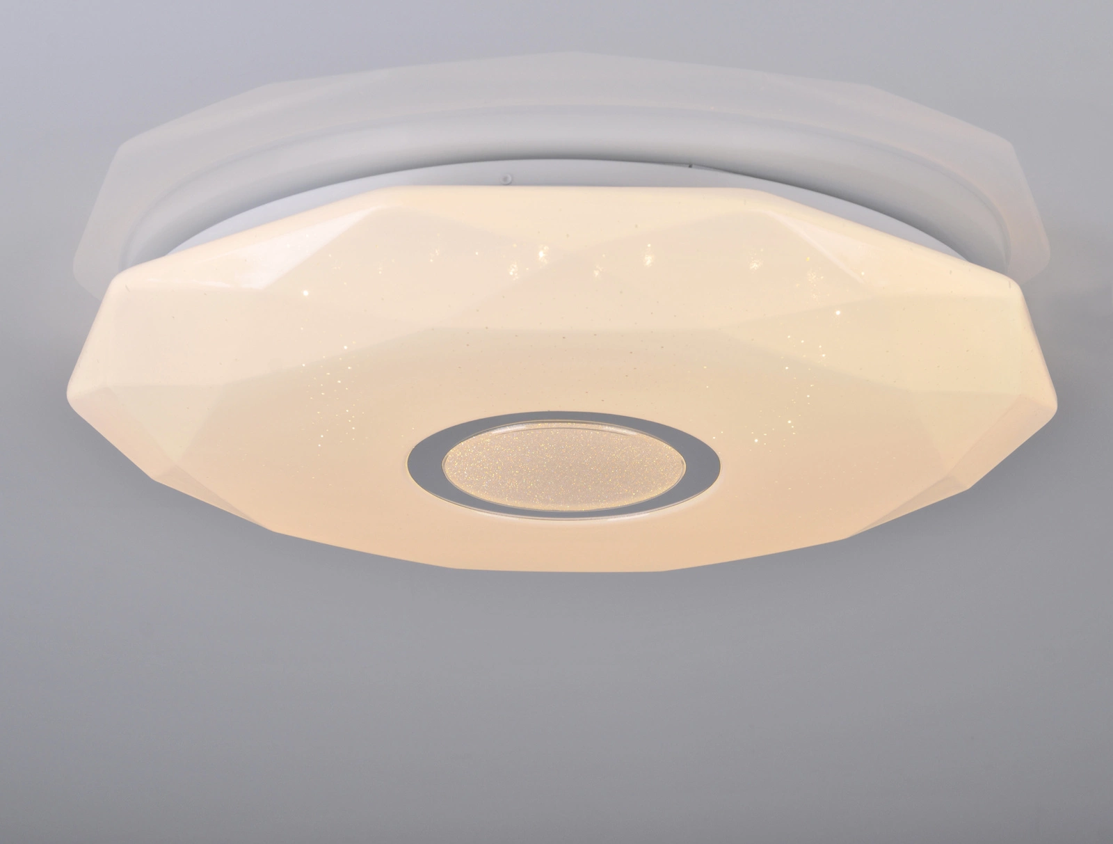 Plafon LED Diamond, o nowoczesnym wyglądzie, przywodzącym na myśl diament, to wysokiej jakości źródło światła LED. Niewątpliwą zaletą tej niezwykłej lampy sufitowej jest to, że pozwala ona na łatwe sterowanie nią za pomocą pilota. Posiada zintegrowane źródło światła LED, które emituje światło o mocy 36W, strumieniu świetlnym 3060lm i temperaturze barwowej w zakresie od 3000K do 6500K. Dzięki temu możemy z łatwością dostosować światło emitowane przez lampę sufitową do naszych potrzeb i to bez ruszania się z miejsca. Ciepłe białe światło sprawi, że w mieszkaniu będziemy mogli się zrelaksować, zimne natomiast pobudzi i doda energii do pracy. Diody LED zostały ukryte pod mlecznym kloszem, który rzuca łagodne refleksy i zapewnia równomiernie rozpraszające się światło, dzięki czemu niweluje negatywny efekt olśnienia. Solidna i sprawdzona konstrukcja, a także doskonały stosunek ceny do jakości sprawiają, że prezentowany plafon z pilotem idealnie sprawdzi się wszędzie tam gdzie potrzeba niezawodnego światła czyli do: