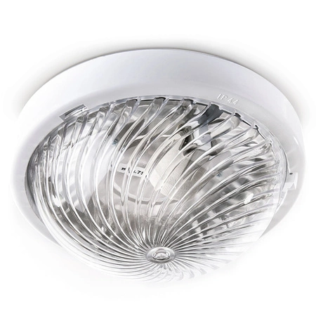 Tanie rozwiązanie na wydajne oświetlenie. Oprawa w kolorze białym z przezroczystym kloszem do montażu sufitowego lub ściennego.