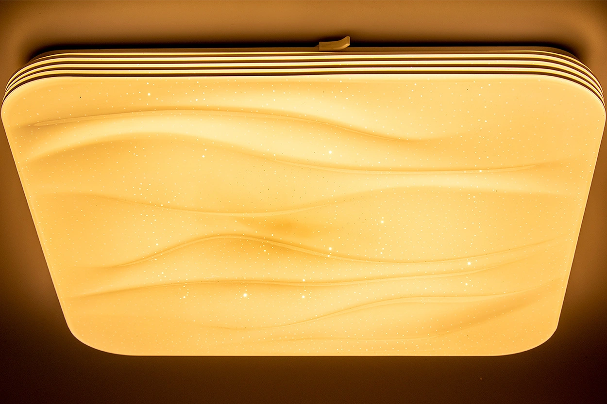 Plafon wyposażony jest w pilot IR do zdalnego sterowania, dzięki któremu możemy płynnie lub natychmiastowo zmienić barwę ŚWIATŁA, ściemnić do trybu nocnego lub ustawić TIMER wyłączający lampę po 30 sekundach.