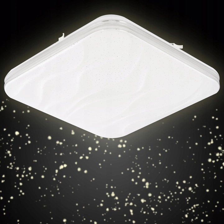 Lampa sufitowa LED wyróżnia się bardzo prostym montażem, a w zestawie zawiera kołki montażowe oraz zasilacz LED-driver, dzięki któremu panel LED jest bezpieczny w użytkowaniu. Diamentowy klosz lampy wykonany jest z tworzywa sztucznego odpornego na uszkodzenia, ponadto lampę można zawiesić również na ścianie, by służyła jako przykuwający wzrok kinkiet.