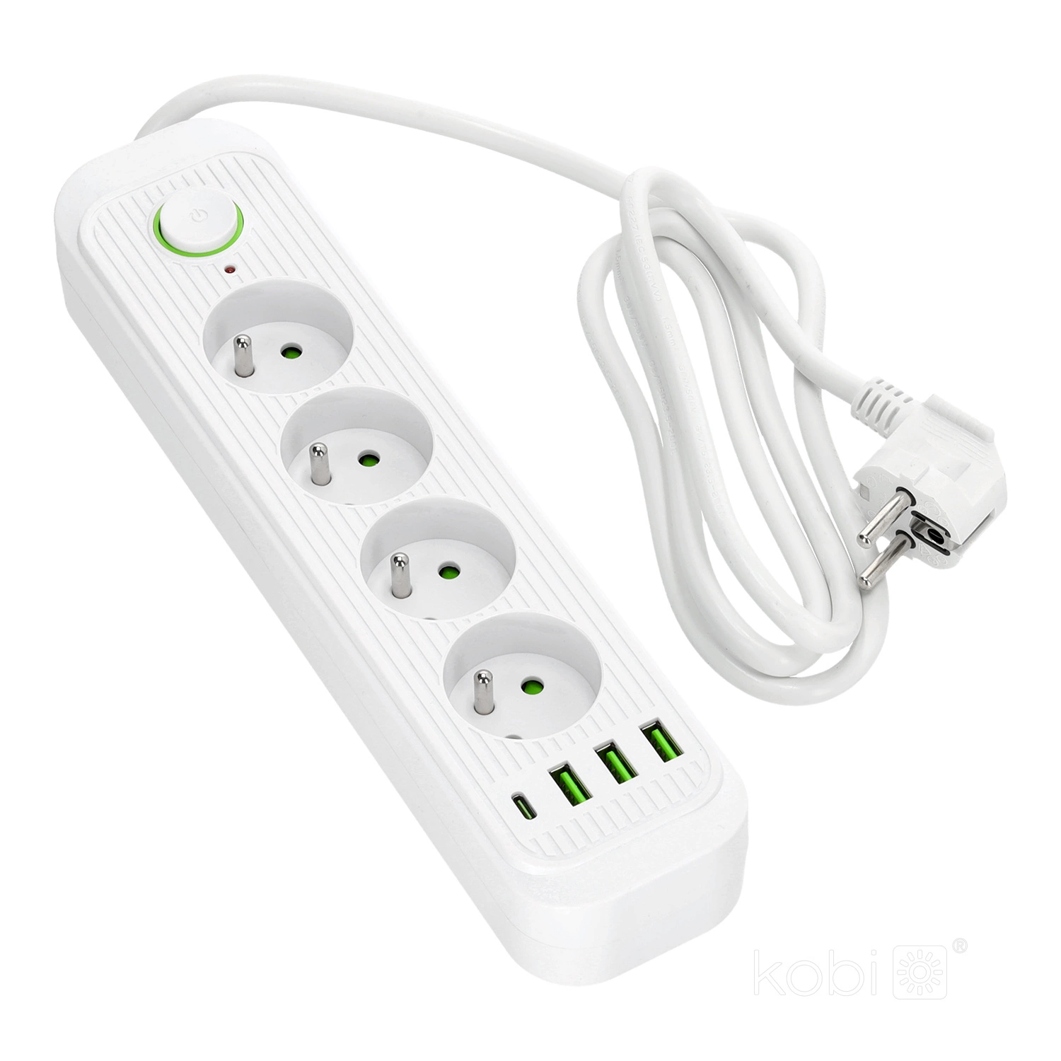 Przedłużacz KOBI CONNECTO to nowoczesne i funkcjonalne rozwiązanie do użytku domowego, zapewniające bezpieczne zasilanie i ładowanie wielu urządzeń. Wyposażony w uziemienie oraz wyłącznik, który umożliwia łatwe odłączanie zasilania bez konieczności wyciągania wtyczki. Przedłużacz posiada 4 gniazda 230V oraz 4 porty USB (3 x USB-A oraz 1 x USB-C), dzięki czemu możesz jednocześnie podłączyć urządzenia elektroniczne i ładować sprzęt mobilny. Maksymalne natężenie prądu wynosi 16A, a maksymalne obciążenie to 3250W, co czyni go idealnym do codziennych zadań w domu lub biurze. Produkt został wyposażony w przesłony torów prądowych, co chroni przed przypadkowym kontaktem dzieci z gniazdkami. Przedłużacz ma przewód H05VV-F 3x1,5 mm, który gwarantuje wytrzymałość i bezpieczne użytkowanie. Całość zapakowana jest w folię z zawieszką, co ułatwia przechowywanie i ekspozycję.