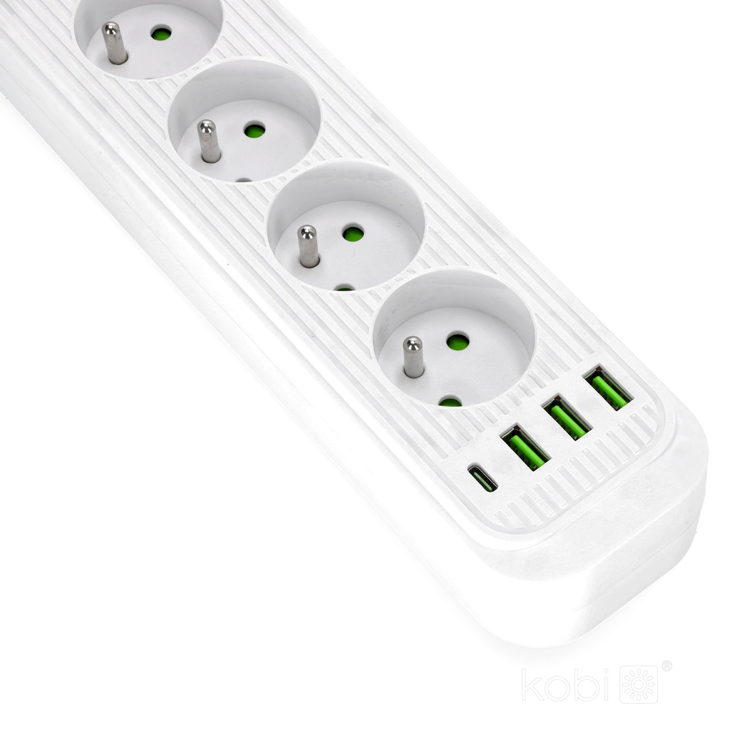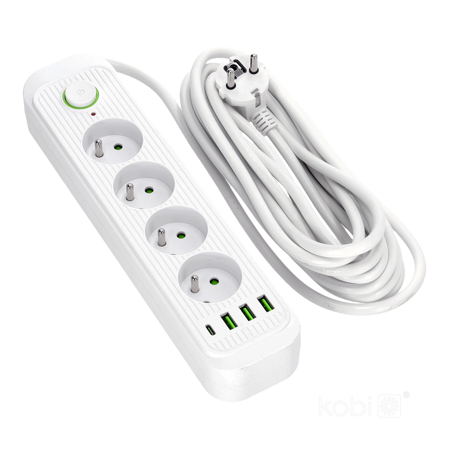 Przedłużacz CONNECTO 4x230V 5m 4GN Uziemienie Wyłącznik 4xUSB Biały Kobi