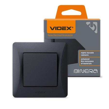 Przełącznik włącznik jedno-biegunowy BINERA VIDEX to niezawodne i stylowe rozwiązanie do każdego wnętrza. Dzięki eleganckiemu, czarnemu designowi, świetnie wkomponuje się zarówno w nowoczesne, jak i klasyczne wnętrza. Produkt wykonany jest z trwałego poliwęglanu, co zapewnia długotrwałe użytkowanie.