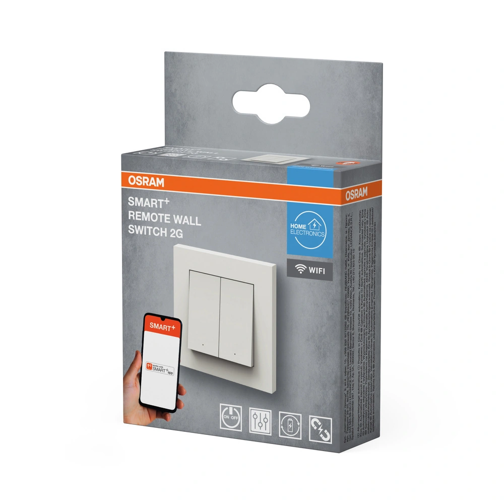 Odkryj nowy wymiar komfortu z inteligentnym przełącznikiem ściennym Osram SMART+ w eleganckim czarnym wykończeniu! Zaprojektowany tak, aby zrewolucjonizować Twój domowy system oświetlenia, ten innowacyjny przełącznik wykorzystuje technologię WiFi, dzięki czemu masz pełną kontrolę nad swoim oświetleniem z dowolnego miejsca. Wystarczy jedynie zainstalować darmową aplikację SMART+ na swoim smartfonie z systemem Android 8.0 lub iOS 14.0, a światło w Twoim domu można dostosować do każdej sytuacji - od przytulnego wieczornego oświetlenia po jaskrawą atmosferę do pracy.