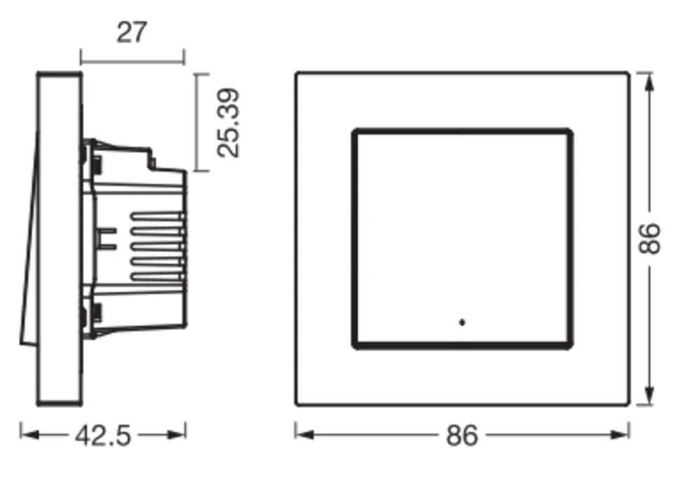 - Łatwy montaż: Głębokość instalacji wynosząca zaledwie 27 mm pozwala na szybką integrację z istniejącą instalacją elektryczną.