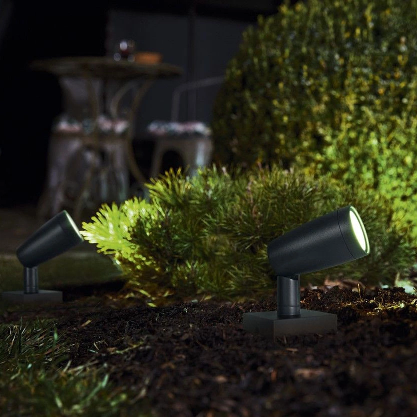 Wykonany z wysokiej jakości aluminium i posiadający stopień ochrony IP44, reflektor jest przygotowany na trudne warunki atmosferyczne. Protokół łączności WiFi pozwala na zdalne sterowanie urządzeniem, co czyni go wygodnym rozwiązaniem dla nowoczesnych ogrodów. Jest wbijany, co upraszcza montaż, a dzięki trwałości wynoszącej 25000 godzin, zapewnia długą żywotność. Posiada certyfikaty CE, a jego klasyczny szary kolor dopasuje się do każdego ogrodu.