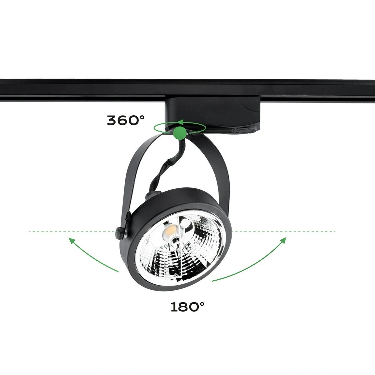Reflektor VICTUS można obracać wokół własnej osi o 360° i odchylać aż do 180°, co pozwala precyzyjnie ukierunkować światło – niezależnie od układu pomieszczenia. Swobodnie przesuwasz go po szynie i ustawiasz dokładnie tam, gdzie potrzebujesz doświetlenia. Taka regulacja daje pełną kontrolę nad oświetleniem – od akcentowania wybranych stref po równomierne doświetlenie całego wnętrza. To funkcjonalność, która sprawdza się w codziennym użytkowaniu i rośnie razem z Twoimi potrzebami.