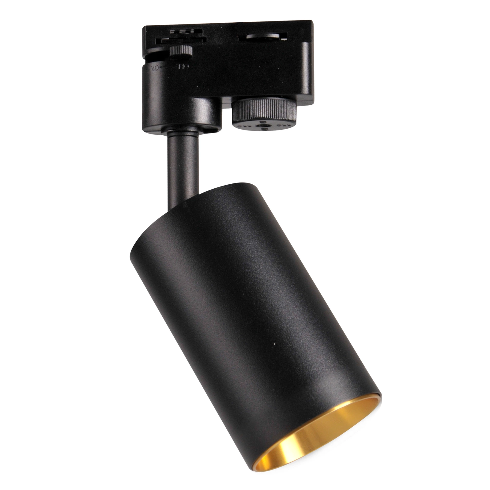 Reflektor szynowy w kolorze czarnym z możliwością zamontowania żarówki z gwintem GU10 o maksymalnej mocy 10W, przeznaczony do montażu szynowego. Oprawa idealnie sprawdzi się w domu, biurze, wystawie sklepowej czy korytarzu. Reflektor został zaprojektowany w nowoczesnym minimalistycznym designie, sprawdzi się w różnych aranżacjach wnętrz i nada im wyjątkowego charakteru. Dzięki wykonaniu z aluminium reflektor jest odporny na korozję oraz charakteryzuję się większą wytrzymałością na uszkodzenia mechaniczne. Lampa posiada możliwość regulacji kąta padania światła, co umożliwia łatwe ustawienie światła w odpowiedni dla nas sposób. Takie rozwiązanie bardzo dobrze sprawdzi się do podkreślania wybranych elementów wnętrza ich akcentowania, lub po prostu do oświetlania bardziej intensywnego np. biurka czy stołu. W zestawie znajduje się pierścień w kolorze złotym, który możemy używać w celu akcentowania środka reflektora.