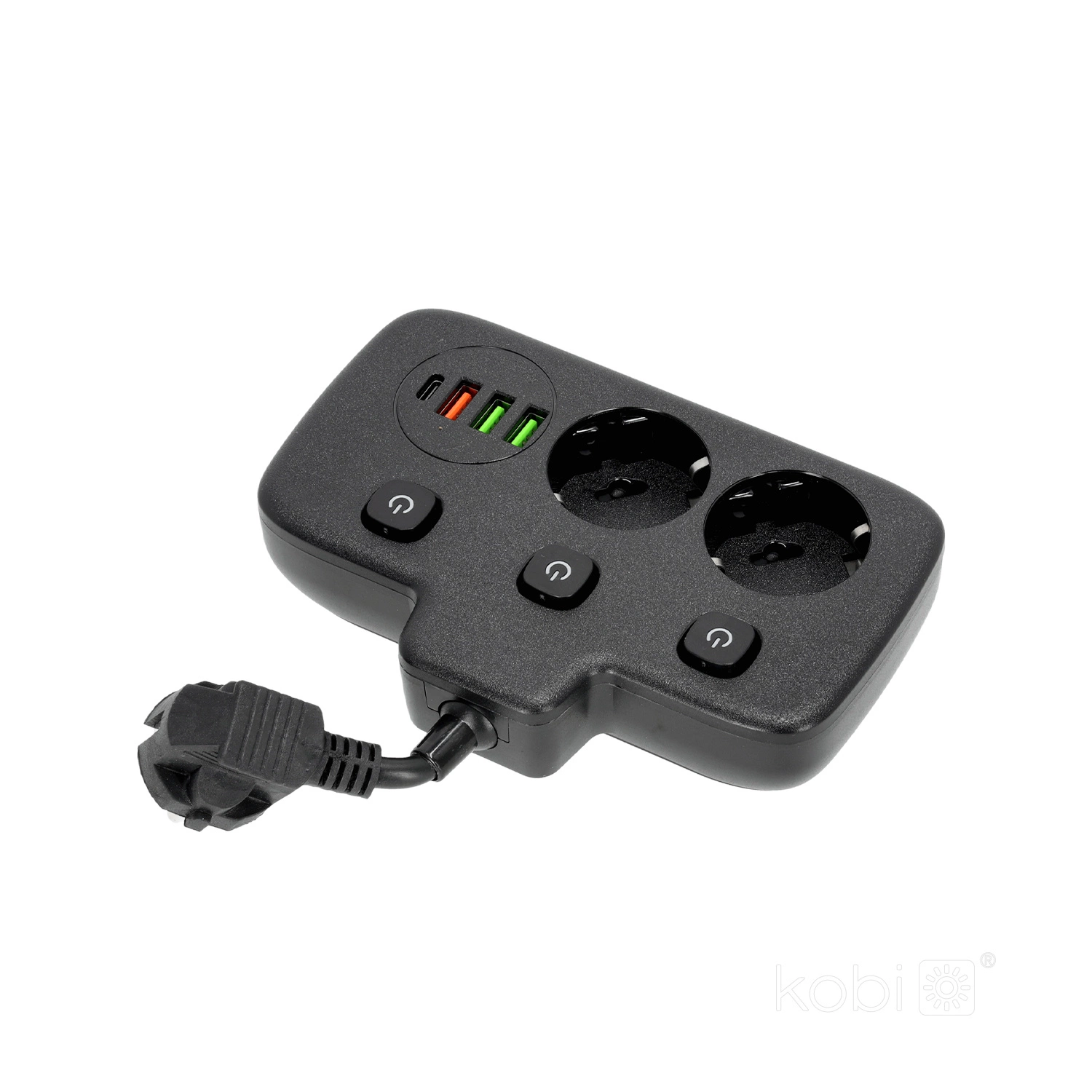 Rozgałęźnik KOBI LINEA FL to praktyczne i funkcjonalne rozwiązanie do użytku domowego, wyposażone w uziemienie typu schuko oraz trzy oddzielne wyłączniki. Posiada dwa gniazda 230V oraz cztery porty USB (3 porty USB-A i 1 port USB-C), co umożliwia jednoczesne podłączanie różnych urządzeń elektrycznych oraz ładowanie sprzętu mobilnego. Dzięki trzem oddzielnym wyłącznikom można indywidualnie sterować zasilaniem poszczególnych gniazd, co zapewnia większą elastyczność i oszczędność energii.