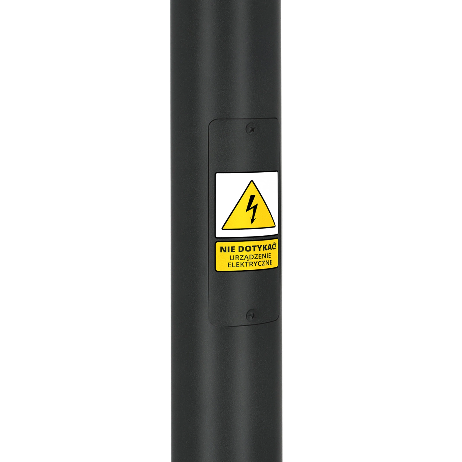 Słup wyposażony jest w komorę rewizyjną umożliwiającą montaż tablicy bezpiecznikowej, co znacznie ułatwia serwis i podłączenia instalacyjne. Średnica 60 mm pozwala na integrację z szeroką gamą standardowych opraw oświetleniowych LED. Dzięki nośności do 25 kg, konstrukcja umożliwia stabilny montaż nie tylko opraw, ale również dodatkowych akcesoriów oświetleniowych. Podstawa słupa przystosowana jest do montażu na kotwie 200 × 200 mm, co zapewnia bezpieczne osadzenie w fundamencie.