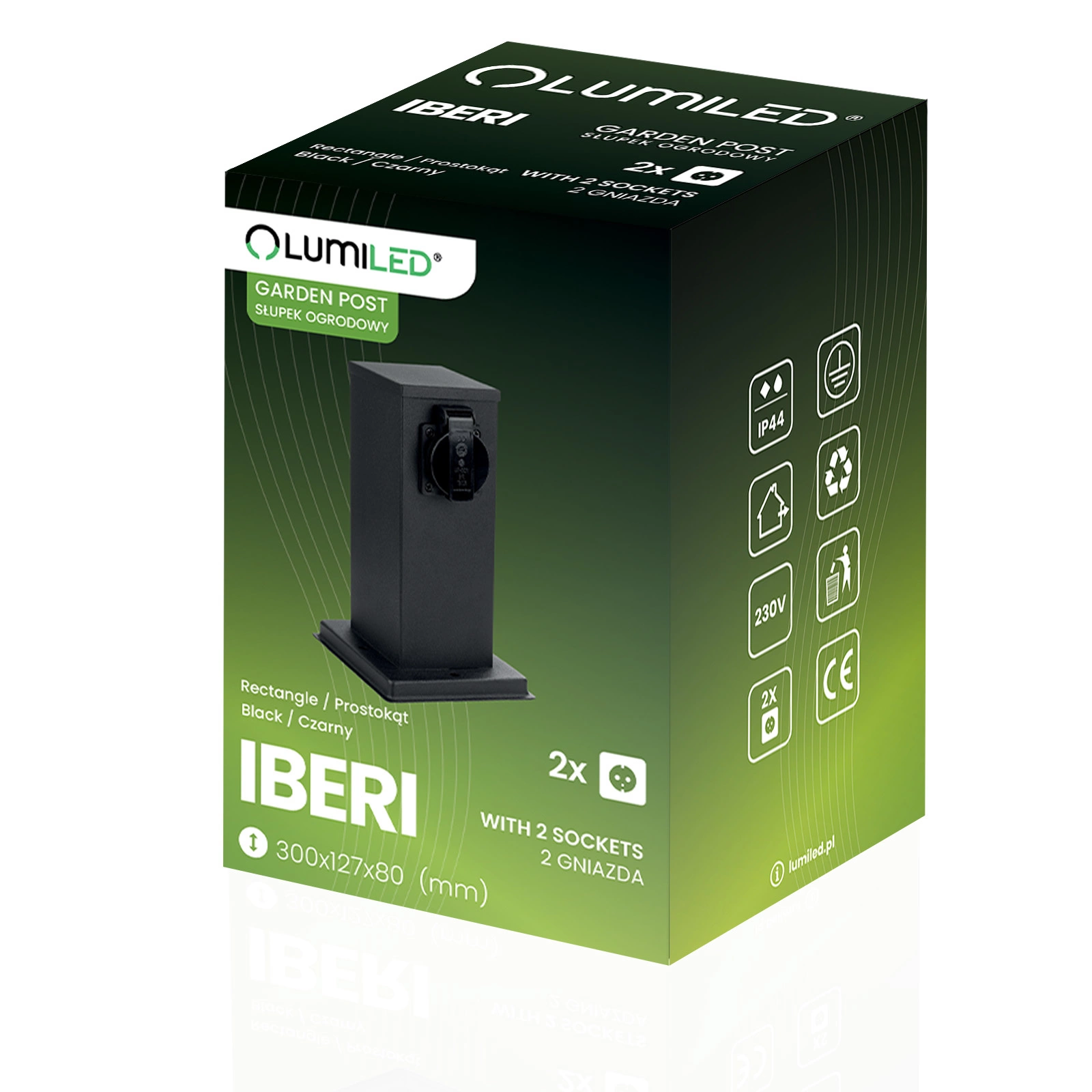 Słupek Ogrodowy IBERI Zewnętrzny Stojący 230V 22cm 2x Gniazdo Sieciowe LUMILED