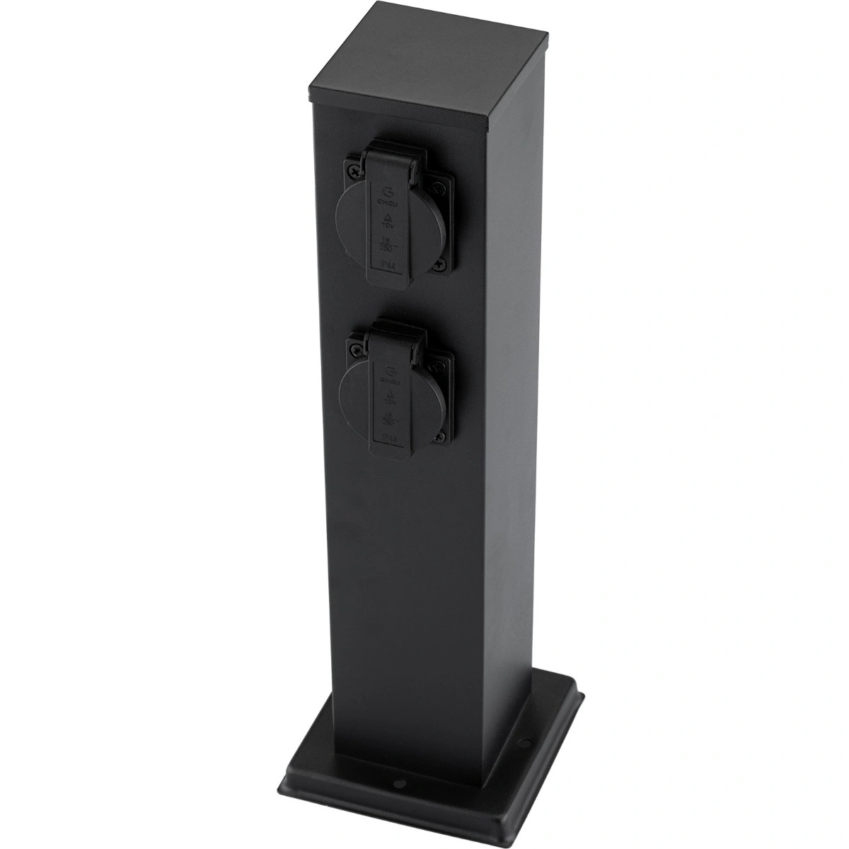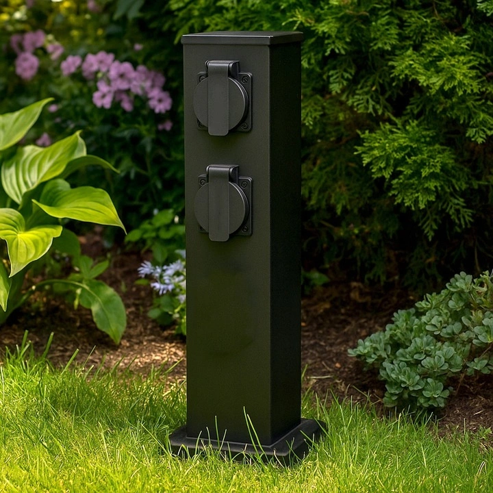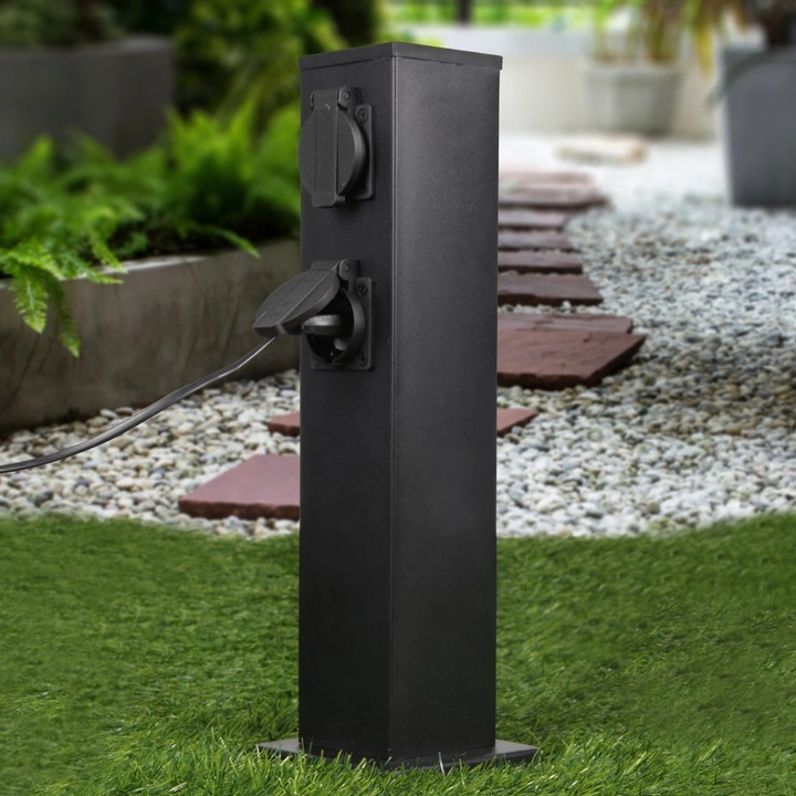 Słupek ogrodowy zasilający o wysokości 40 cm. Wyposażony został w cztery gniazda sieciowe, dające możliwość podpięcia max 4x 500W. Słupek dzięki podwyższonej odporności na warunki atmosferyczne IP44 swoje zastosowanie znajduje głównie jako zaopatrzenie ogrodów i tarasów.