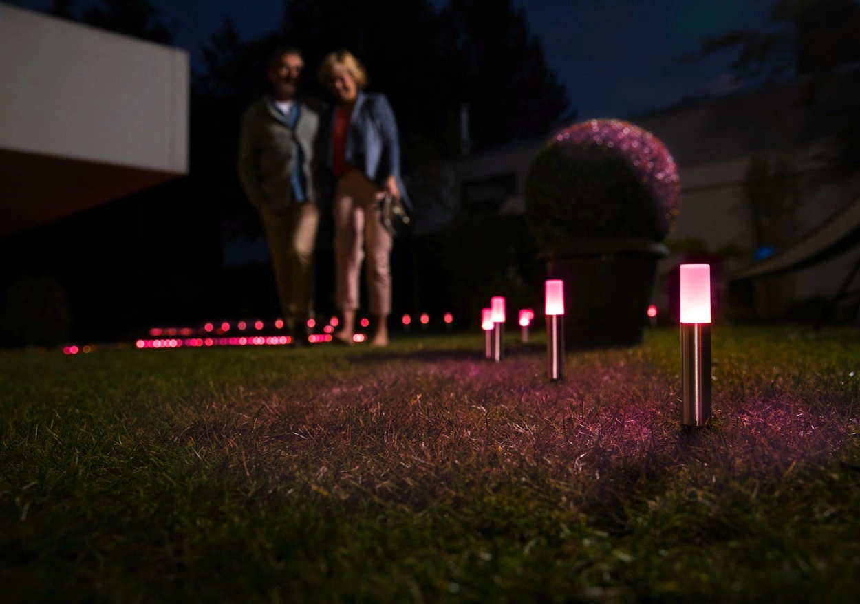 • Kolorowe oświetlenie ogrodowe z inteligentnymi opcjami sterowania