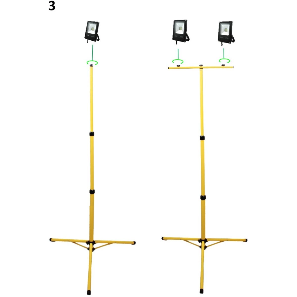 Uniwersalny statyw firmy Goldlux pozwala na łatwy montaż naświetlaczy, reflektorów, projektorów LED. Stojak wykonany został z wysokiej jakości materiałów, które sprawiają, że stoi on stabilnie. Jest on idealny do zastosowania w miejscach takich jak: garaż, budowa, studio fotograficzne, czy nawet masowa impreza plenerowa. Pozwala on na zamontowanie nawet dwóch naświetlaczy LED.