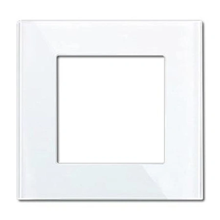 Szklana ramka do gniazdka to propozycja stworzona dla najmodniejszych, nowoczesnych wnętrz. Produkt w kształcie kwadratu ma uniwersalny biały kolor.