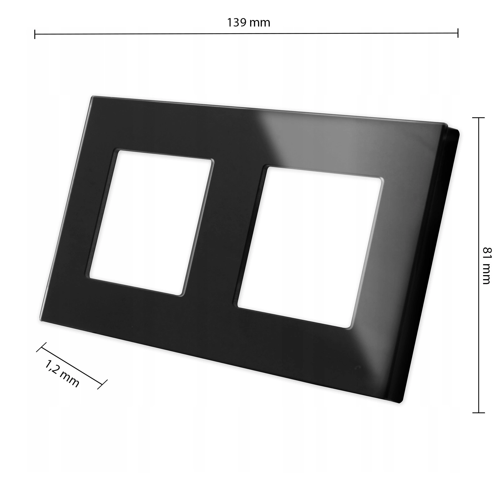 Szklana ramka do gniazdka to propozycja stworzona dla najmodniejszych, nowoczesnych wnętrz. Produkt w kształcie prostokąta ma uniwersalny czarny kolor.