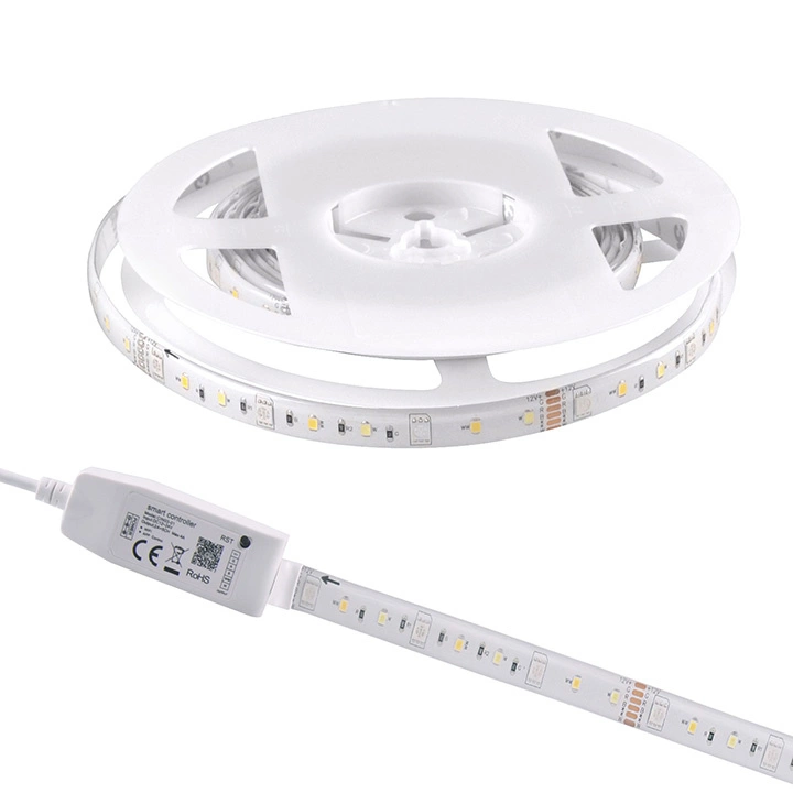 Taśma LED Wi-Fi SMART wykonana z tworzywa sztucznego o mocy 8W i strumieniu świetlnym równym 680lm za pomocą aplikacji TUYA smart na naszym smartfonie umożliwia zdalne sterowanie podłączonym do niego urządzeniem. Aplikację można pobrać na platformę Android w sklepie Google Play i Apple iOS w sklepie App Store. Produkt ma wbudowany moduł łączności bezprzewodowej, która pracuje w standardowym dla Wi-Fi paśmie 2,4 GHz. Barwa światła taśmy LED to barwa ciepła przechodząc przez neutralną, aż do barwy zimnej. Pasek posiada również RGB co daje nam oprócz podstawowych barw MULTIKOLOR (3000K do 6000K + RGB). Taśma LED posiada stopień szczelności IP65 co daje nam, iż jest ona wodoodporna. Klasa energooszczędności to: A+, A++, A.