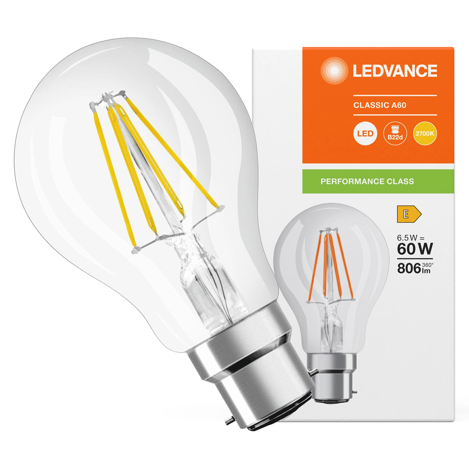 Odkryj doskonałą jakość oświetlenia z żarówką LED A60 B22d 6,5W firmy LEDVANCE, która łączy nowoczesne technologie z estetycznym designem. Ta żarówka o ekwiwalentnej mocy 60W emituje ciepłe białe światło o temperaturze barwowej 2700K i strumieniu świetlnym 806 lm, co zapewnia przytulną atmosferę w każdym pomieszczeniu. Doskonale nadaje się do użytku domowego oraz komercyjnego, a dzięki wysokiemu współczynnikowi oddawania barw (Ra 80) barwy są naturalne i przyjemne dla oka. Tym samym, stanowi idealne rozwiązanie dla salonów, sypialni czy biur.