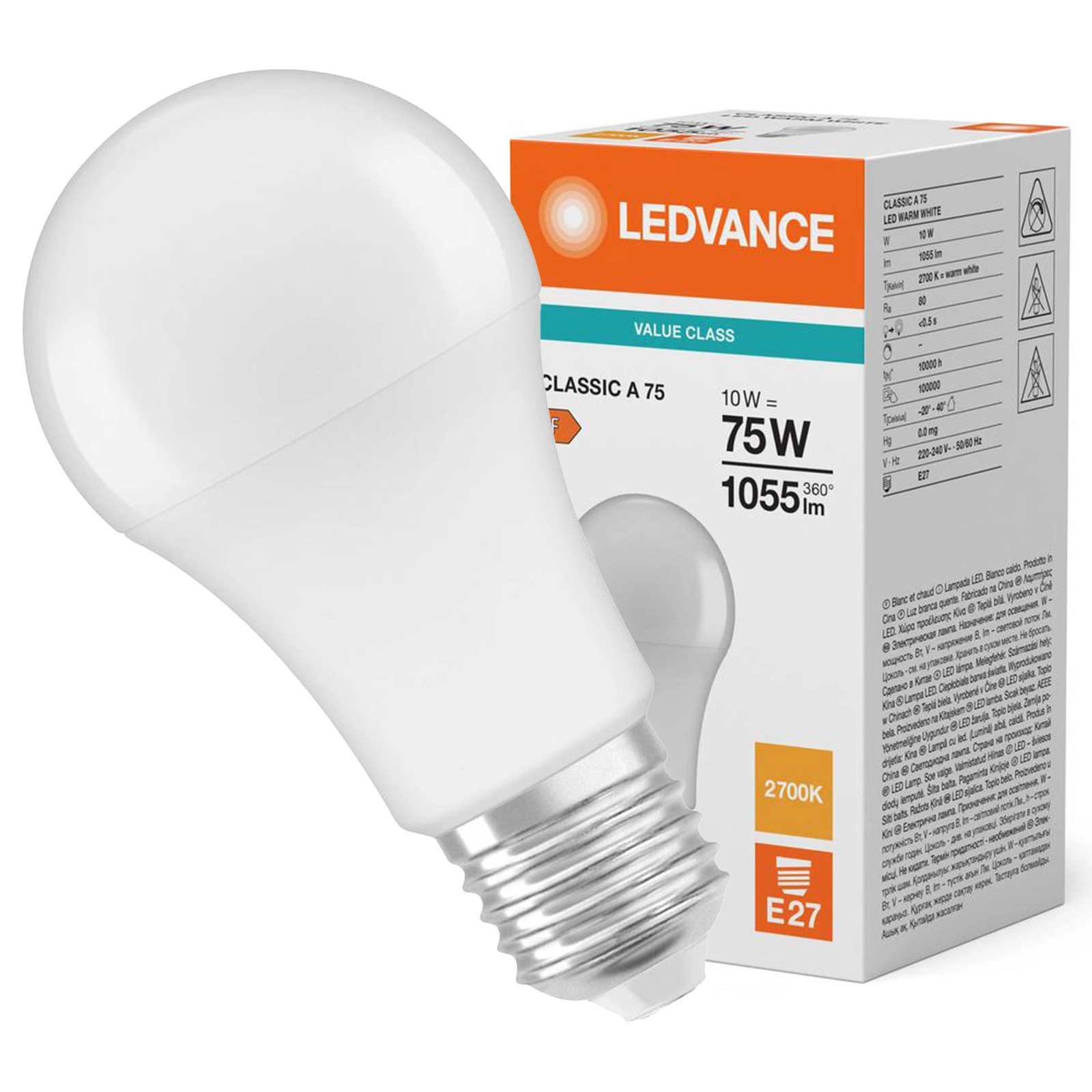 Żarówka LED A60 E27 10W marki LEDVANCE to nowoczesne rozwiązanie, które łączy w sobie oszczędność energii i długą żywotność, idealne do oświetlenia domowego i biurowego. Dzięki mocy 10 watów i ekwiwalentowi 75 watów tradycyjnej żarówki, zapewnia optymalny balans pomiędzy efektywnością a kosztem eksploatacji. Strumień świetlny wynoszący 1055 lumenów oraz temperatura barwowa 2700K gwarantują przyjemne, ciepłe białe światło, które sprzyja relaksacji i tworzy komfortową atmosferę.