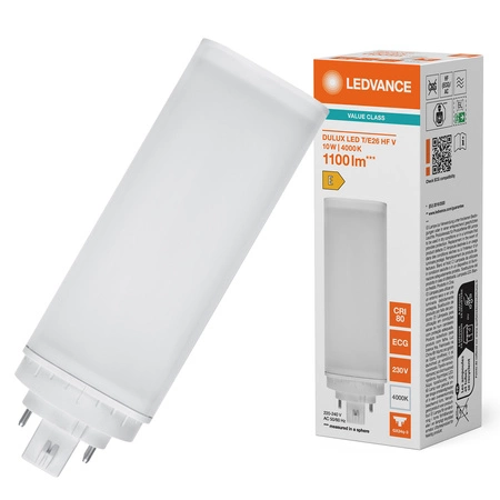 Odkryj doskonałość oświetlenia z żarówką LED DULUX GX24q-3 od LEDVANCE, która w zaskakujący sposób łączy energooszczędność z wydajnością. Ten nowoczesny zamiennik tradycyjnych żarówek 26W zużywa jedynie 10W, co przekłada się na znaczące oszczędności energii przy zachowaniu pełnej mocy świetlnej 1100 lumenów. Neutralna biała barwa światła o temperaturze 4000K tworzy przyjemną i komfortową atmosferę, idealną do codziennego użytku w biurach, domach i miejscach publicznych. Trzonek GX24q-3 oraz forma rurkowa gwarantują szerokie możliwości zastosowania, a matowy kolor przesłony daje delikatne i rozproszone światło.