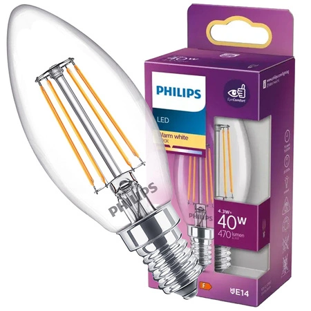 Żarówka LED E14 B35 4,3W = 40W 470lm 2700K Ciepła Filament PHILIPS