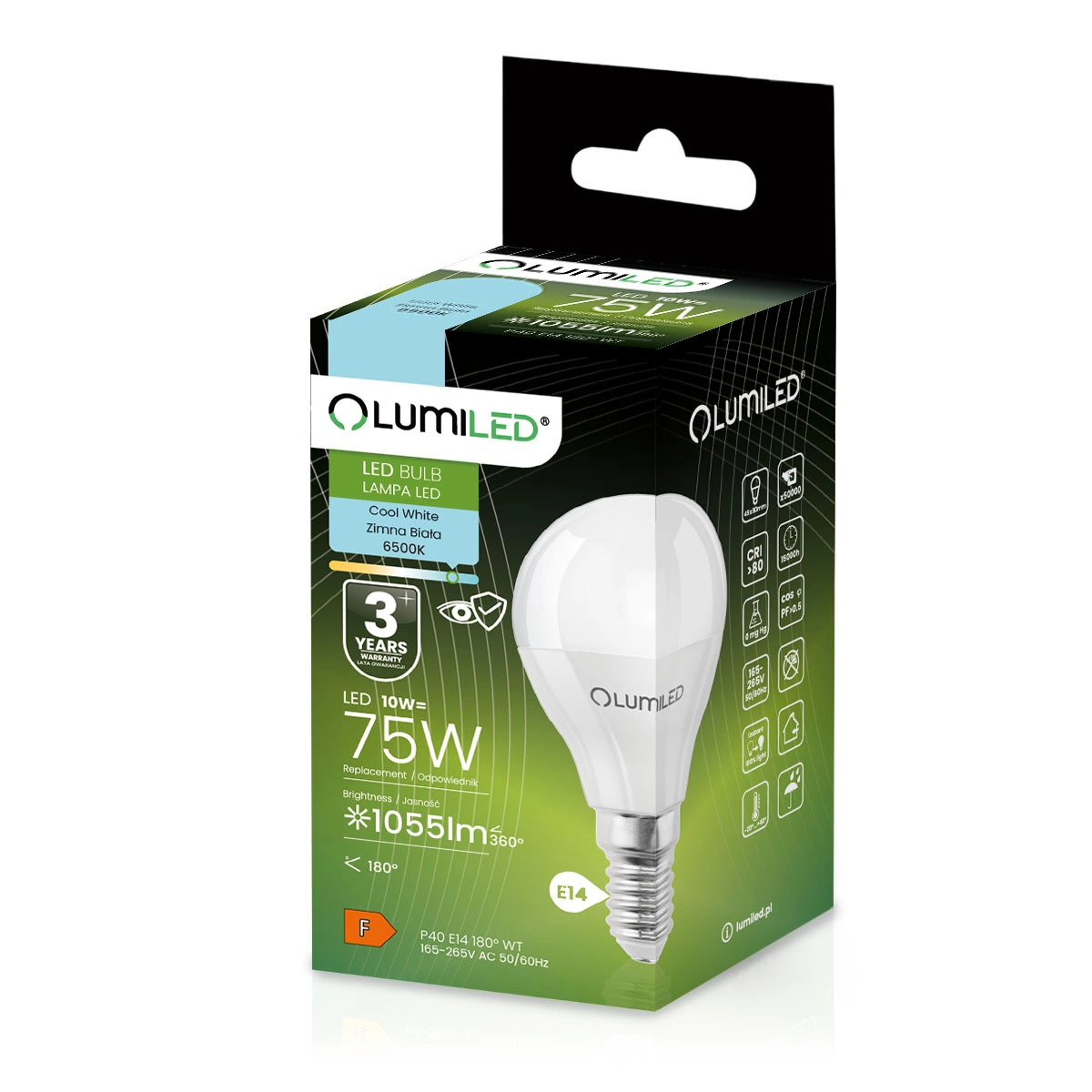 Żarówka LED E14 Kulka P45 10W = 75W 1055lm 6500K Zimna 180° LUMILED