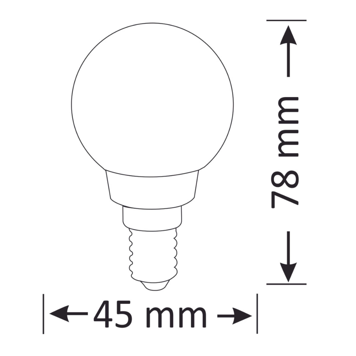 Żarówka Kulka LED renomowanej i uznanej w branży oświetleniowej firmy Goldlux z małym trzonkiem E14 i mocy wynoszącej 2W (odpowiednik klasycznej żarówki o mocy 23W) to wysokiej jakości źródło światła LED. Lampa wykonana została przy użyciu nowoczesnych rozwiązań wykorzystujących innowacyjną technologię diod LED, które charakteryzują się wysoką wydajnością parametrów świetlnych, wiernym odwzorowaniem kolorów oświetlanych przedmiotów oraz wyjątkowo długą trwałością.