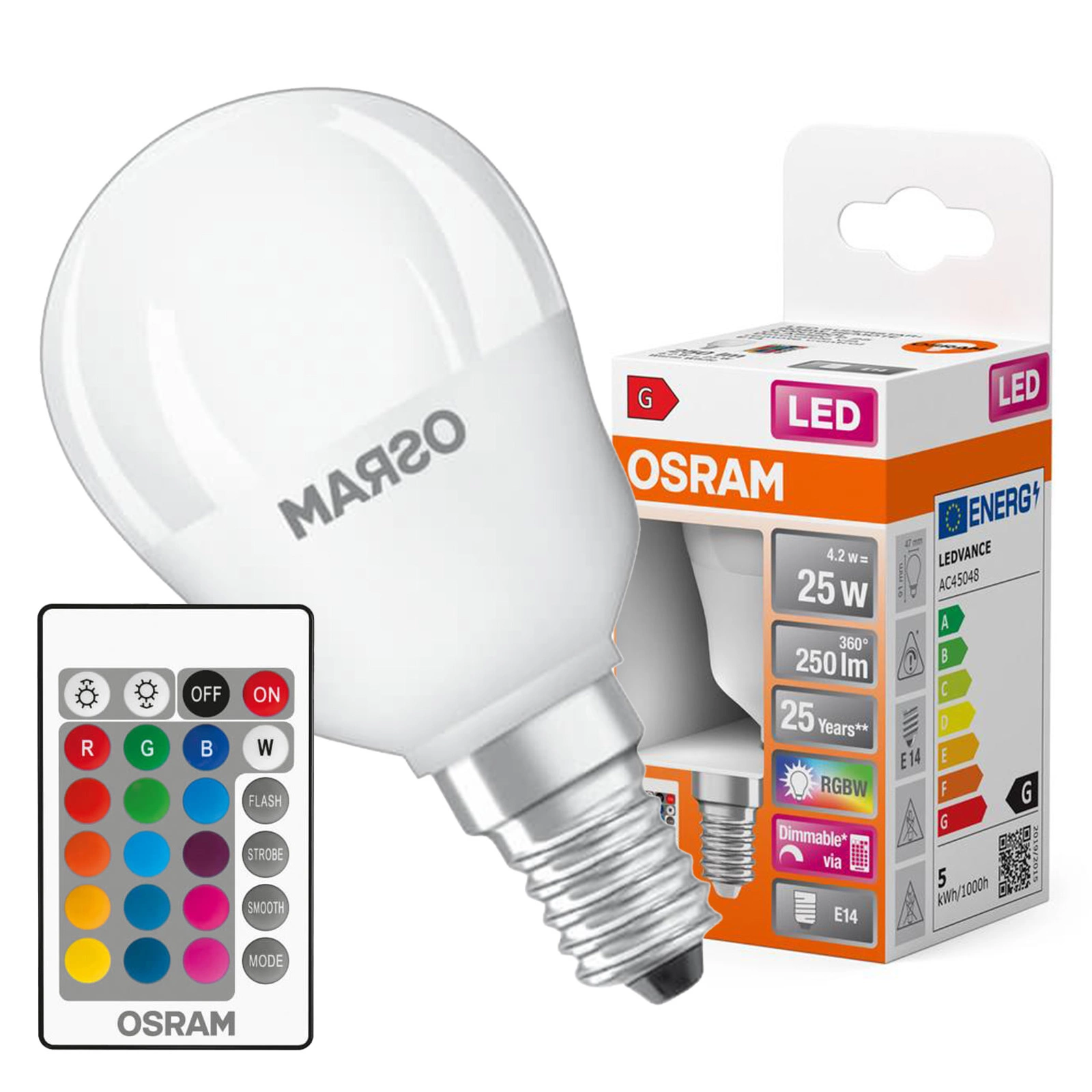 Żarówka LED P47 Kulka E14 4.2W = 25W 250lm 2700K RGBW 200° Ściemnialna Pilot Retrofit Filament Osram