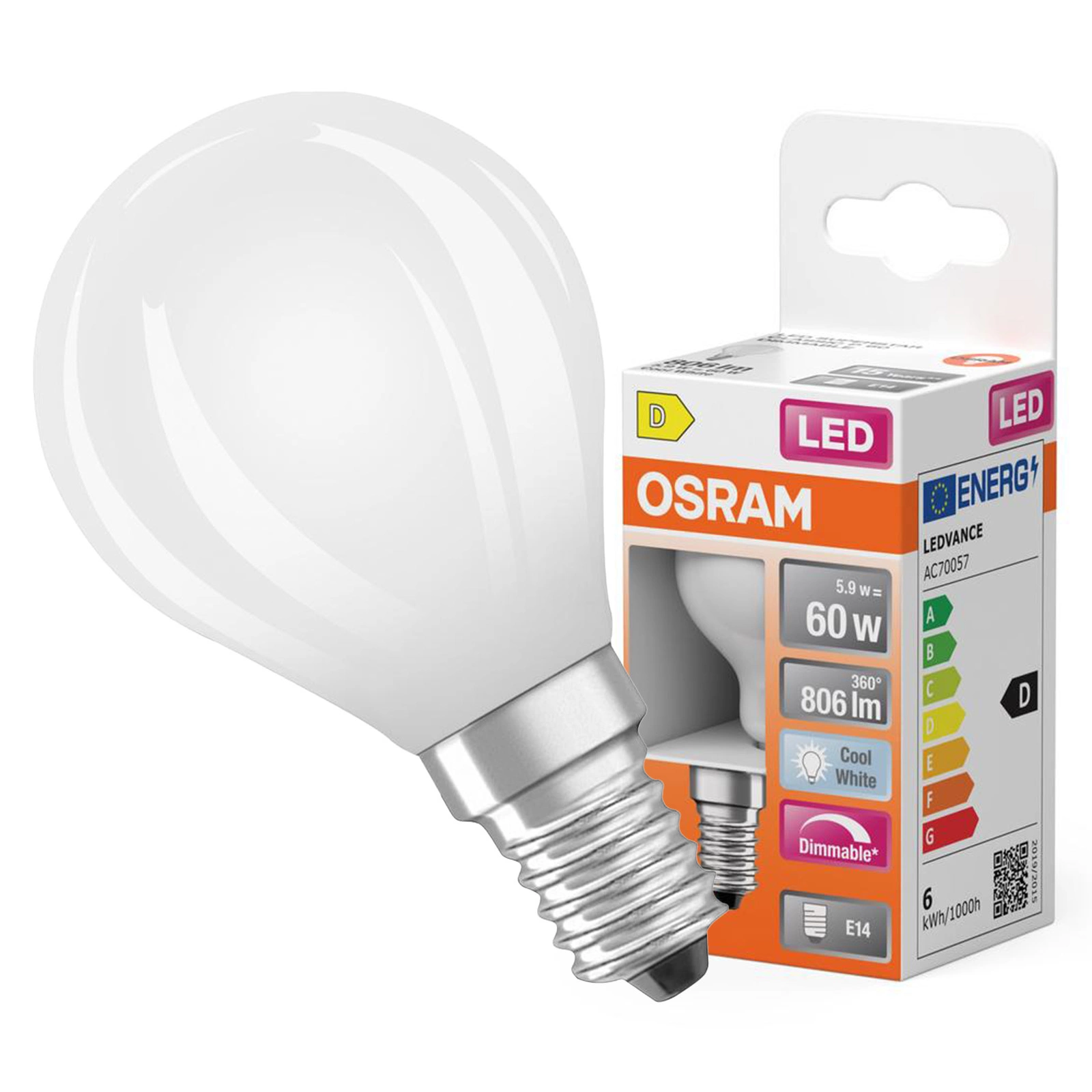 Żarówka LED P45 Kulka E14 5.9W = 60W 806lm 4000K Neutralna 300° Ściemnialna Retrofit Filament CLASSIC Osram
