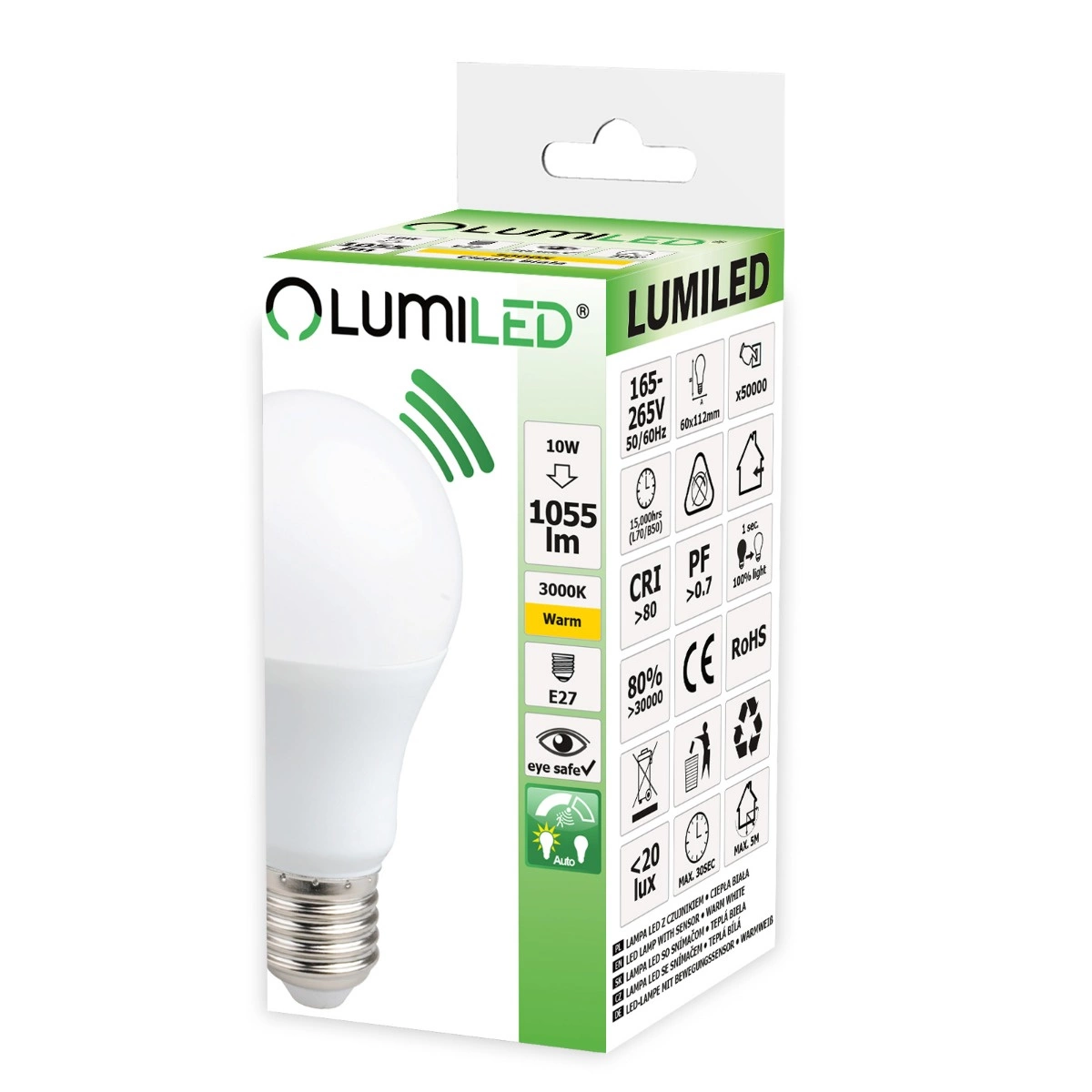 Żarówka LED E27 A60 10W = 75W 1055lm 3000K Ciepła 260° z Czujnikiem Ruchu LUMILED