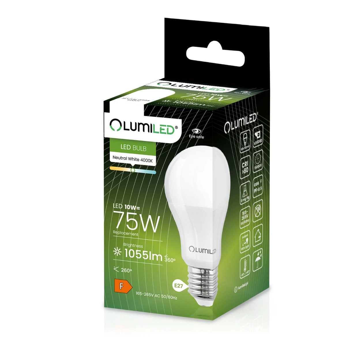 Żarówka LED E27 A60 10W = 75W 1055lm 4000K Neutralna 260° LUMILED