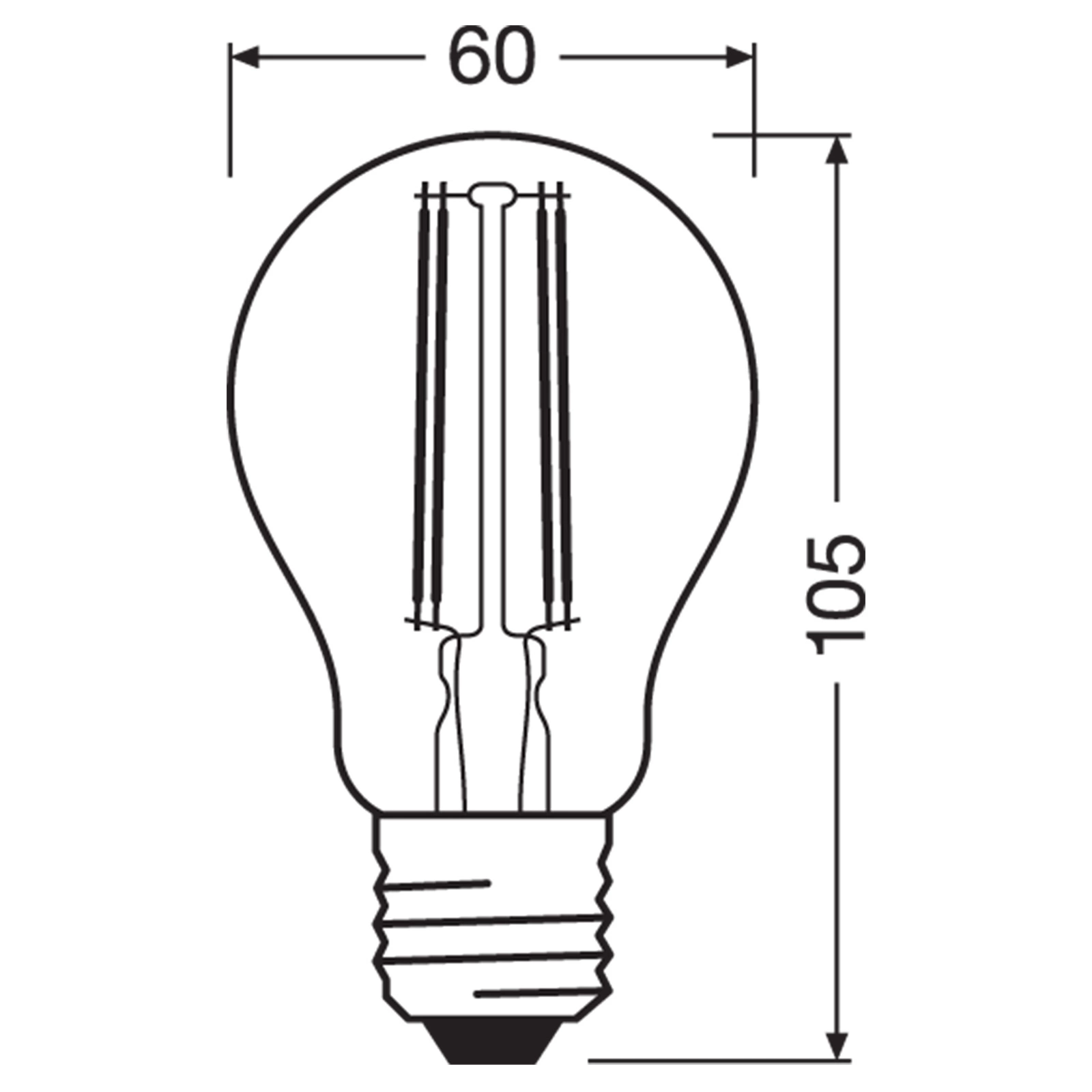 Klasyczny kształt żarówki z technologią WiFi. Cechy produktu: Sterowanie za pomocą aplikacji LEDVANCE SMART+ (z systemem Android™️ co najmniej 8.0 lub iOS 14.0). Możliwość sterowania przez Asystenta Google i Amazon Alexa. Protokół sieciowy: WiFi. Ściemnialne. Trwałość: do 15 000 h. Barwa światła: Ciepłobiała (2700 K). Korzyści ze stosowania produktu: Sterowanie bezprzewodowe za pomocą aplikacji. Łatwy montaż i użycie. Nie zawiera rtęci. Obszar zastosowań: Oświetlenie ogólne. Pomieszczenia mieszkalne. Zastosowania profesjonalne (hotele, bary, butiki itp.). Do użytku na zewnątrz tylko w odpowiednich oprawach zewnętrznych. Wyposażenie / Akcesoria: Do sterowania za pomocą aplikacji LEDVANCE SMART+ wymagany jest smartfon lub tablet (z systemem Android co najmniej 8.0 lub iOS 14.0).