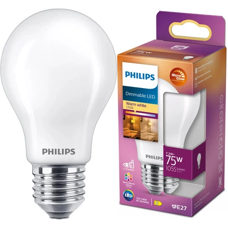 Odkryj nową jakość oświetlenia z żarówką LED Philips E27 A60 z serii WarmGlow, która wprowadzi do Twojego domu ciepły, przytulny nastrój. Dzięki mocy 7.2W i jasności 1055 lumenów, ta żarówka jest idealnym zamiennikiem tradycyjnych żarówek 75W. Niezwykle wysoka skuteczność świetlna 146.6 lm/W gwarantuje oszczędność energii, a ciepła barwa światła, w zakresie 2200-2700K, tworzy atmosferę sprzyjającą relaksowi. Wysoki wskaźnik oddawania barw CRI90 zapewnia, że kolory w Twoim otoczeniu będą wyglądać naturalnie i żywo.