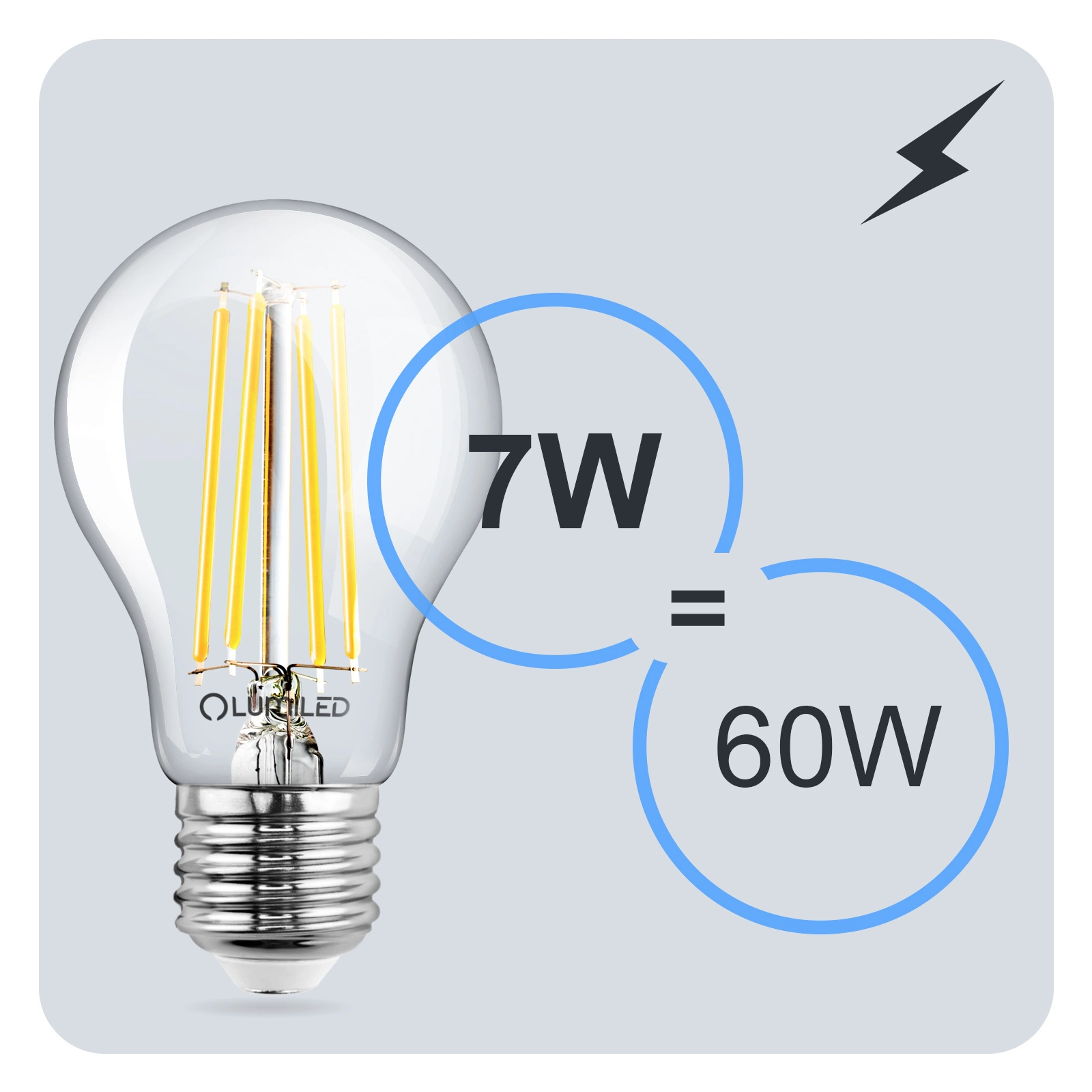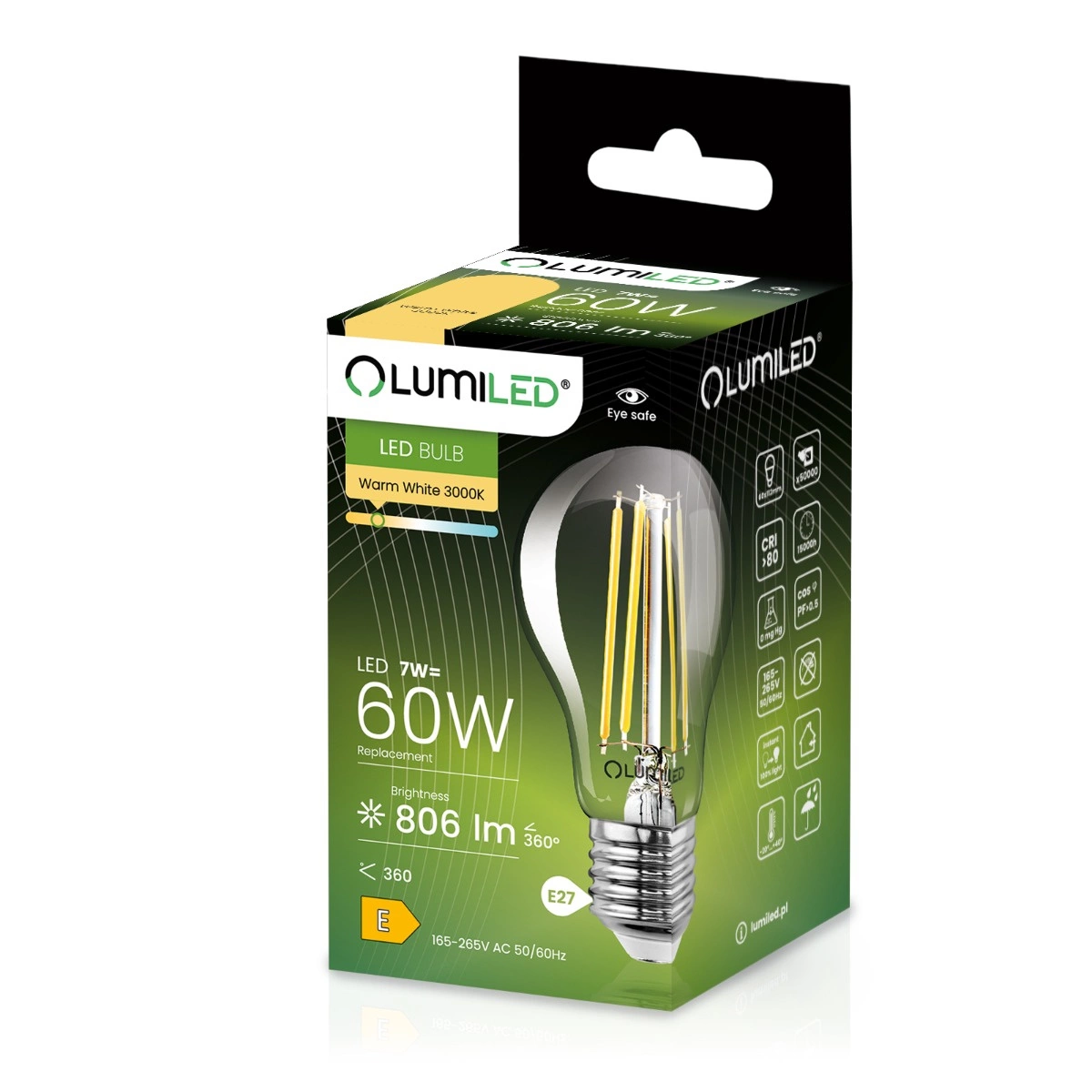 Żarówka LED E27 A60 7W = 60W 806lm 3000K Ciepła 360° FILAMENT LUMILED - pierwsza cecha produktu