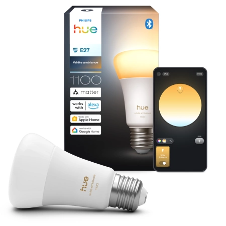 Przemień swój dom w inteligentne królestwo światła z żarówką LED E27 Philips Hue White Ambiance. Ta nowoczesna żarówka o mocy 8.1W, zastępującą tradycyjną żarówkę 75W, oferuje wyjątkową wydajność i oszczędność energii, zmniejszając zużycie do 9 kWh. Z możliwością dostosowania barwy światła od ciepłego 1800K do chłodnego 20000K, stworzysz idealny nastrój na każdą okazję. Strumień świetlny 1100lm zapewnia jasność, której potrzebujesz, a dzięki kompatybilności z protokołami Bluetooth, Zigbee i Matter, kontrola jest na wyciągnięcie ręki z poziomu aplikacji Philips HUE.